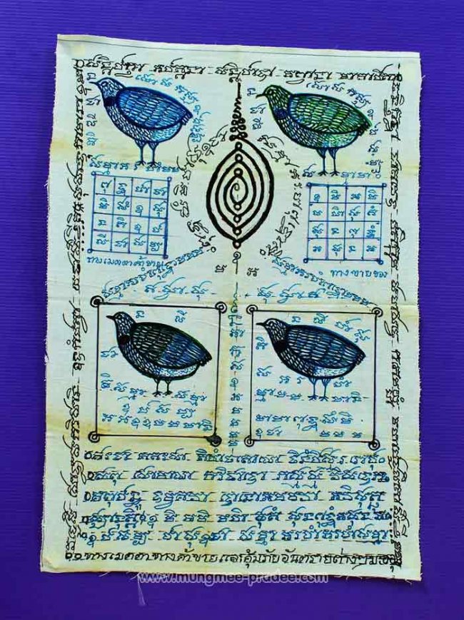 ผ้ายันต์นกคุ่ม เขียนมือบนผ้าสดๆ