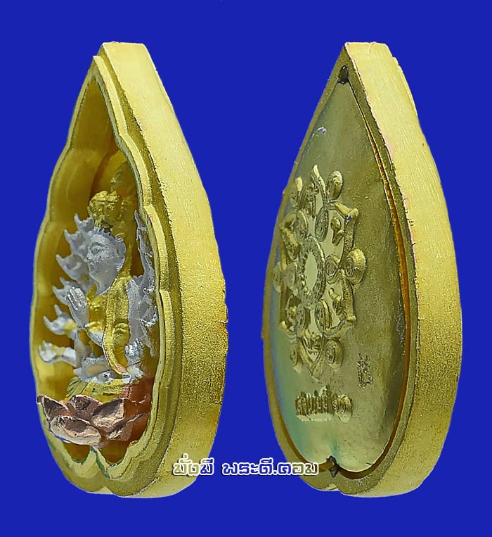 เหรียญเจ้าแม่กวนอิมพันมือ รุ่นมหาเมตตากรุณา วัดมังกรกมลาวาส (วัดเล่งเน่ยยี่) จ.กรุงเทพฯ ปี2560 เนื้อชุบสามกษัตริย์ มีกล่องเดิมครับ เหรียญที่ 3