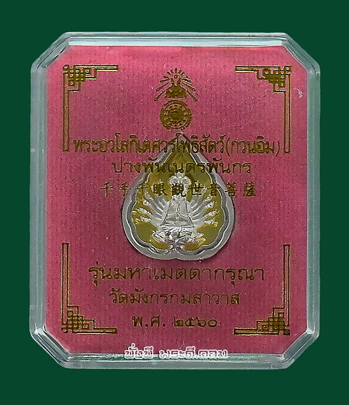 เหรียญเจ้าแม่กวนอิมพันมือ รุ่นมหาเมตตากรุณา วัดมังกรกมลาวาส (วัดเล่งเน่ยยี่) จ.กรุงเทพฯ ปี2560 เนื้อชุบเงินฉากทองมีกล่องเดิมครับ เหรียญที่ 6