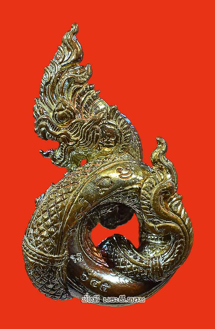 รูปหล่อองค์พญานาค หลวงพ่อรักษ์ อนาลโย วัดสุทธาวาส วิปัสสนา จ.พระนครศรีอยุธยา รุ่นขุมทรัพย์นาคราช ปี 2560 เนื้อสัมฤทธิ์โชค ตนที่ 12 หมายเลข 645