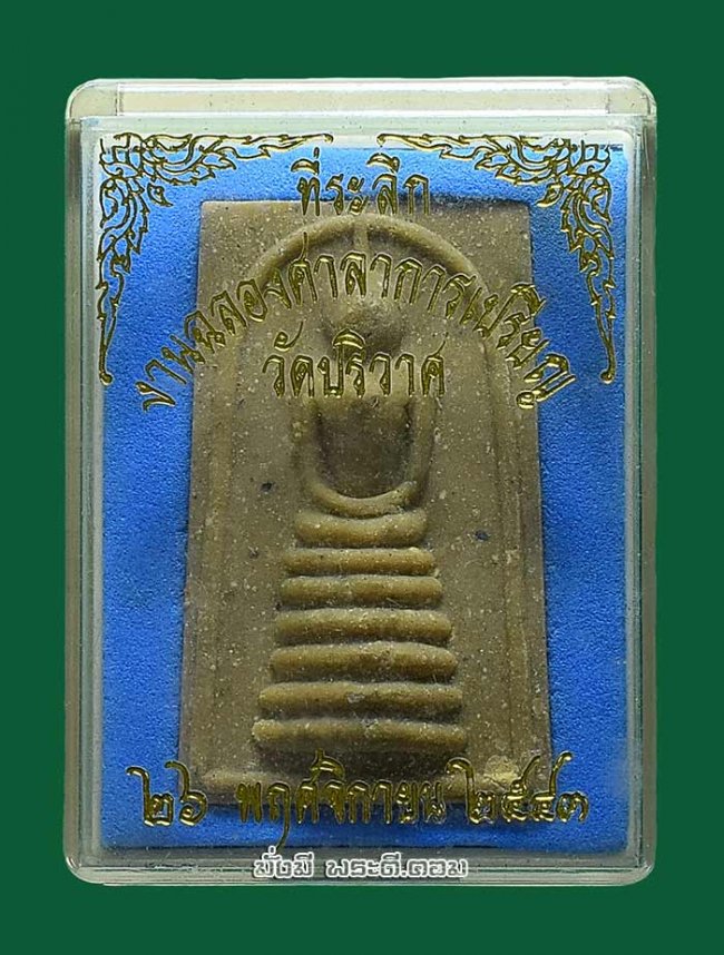 พระสมเด็จตัวหนอน หลังยันต์สาริกา หลวงพ่อสมชาย วัดปริวาสราชสงคราม จ.กรุงเทพฯ ปี 2543 เนื้อผงมีกล่องเดิมครับ