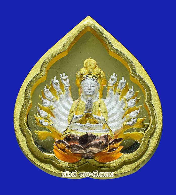 เหรียญเจ้าแม่กวนอิมพันมือ รุ่นมหาเมตตากรุณา วัดมังกรกมลาวาส (วัดเล่งเน่ยยี่) จ.กรุงเทพฯ ปี2560 เนื้อชุบสามกษัตริย์ มีกล่องเดิมครับ เหรียญที่ 3