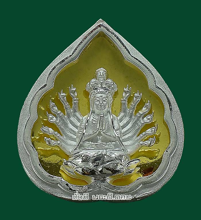 เหรียญเจ้าแม่กวนอิมพันมือ รุ่นมหาเมตตากรุณา วัดมังกรกมลาวาส (วัดเล่งเน่ยยี่) จ.กรุงเทพฯ ปี2560 เนื้อชุบเงินฉากทองมีกล่องเดิมครับ เหรียญที่ 6