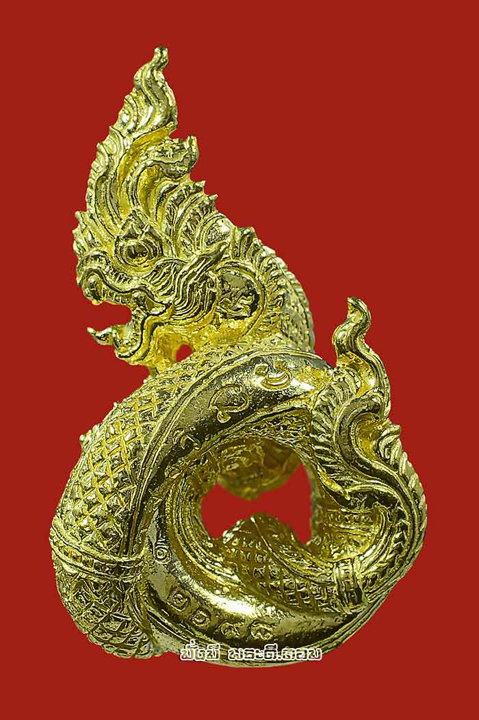 รูปหล่อองค์พญานาค หลวงพ่อรักษ์ อนาลโย วัดสุทธาวาส วิปัสสนา จ.พระนครศรีอยุธยา รุ่นขุมทรัพย์นาคราช ปี 2560 เนื้อทองราชาโชค ตนที่ 21 หมายเลข 2198