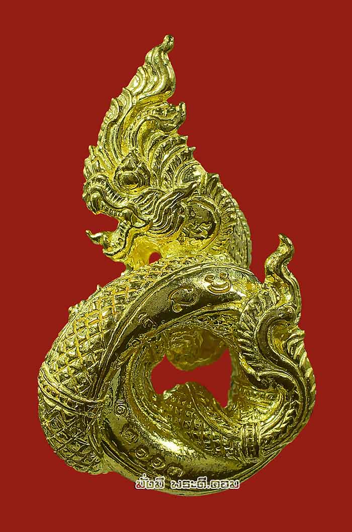 รูปหล่อองค์พญานาค หลวงพ่อรักษ์ อนาลโย วัดสุทธาวาส วิปัสสนา จ.พระนครศรีอยุธยา รุ่นขุมทรัพย์นาคราช ปี 2560 เนื้อทองราชาโชค ตนที่ 23 หมายเลข 2113